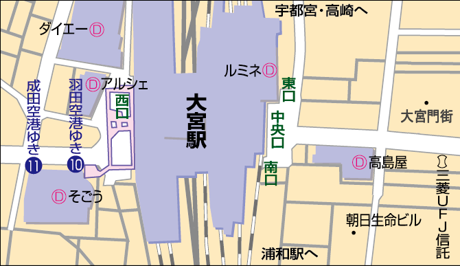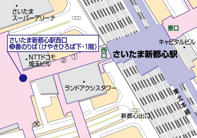 | 西武バス大宮営業所 大宮駅西口 さいたま新都心駅 |