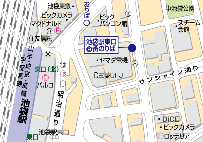 | 東京駅八重洲南口 / 日本橋口 池袋駅東口9番 / 降車場 バスタ新宿(新宿新南口) 大宮駅東口9番 |