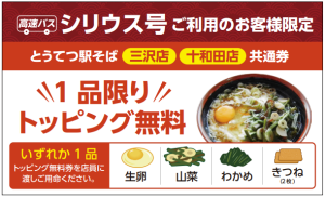 [高速バス]八戸・十和田・七戸 〔シリウス号〕/ 八戸・三沢・野辺地・むつ〔しもきた号〕 国際興業高速バスご利用特典のご案内