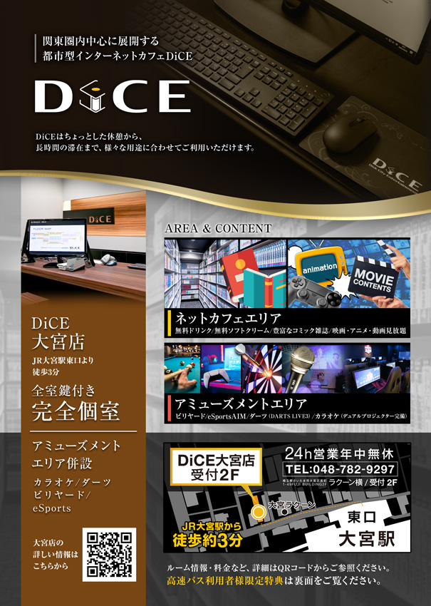 池袋・大宮のインターネットカフェ[DiCE]の利用料金が10%OFFに!