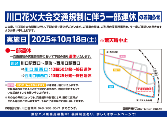 10/18(土)「川口花火大会」開催に伴う一部路線運休のお知らせ