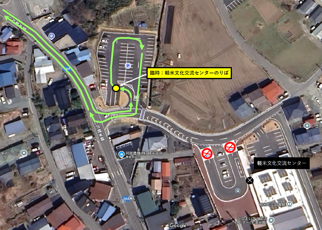 シリウス号「かるまい文化交流センター」の乗車場所が臨時バス停へ変更となります。