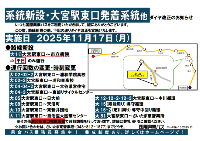 11/17(月)系統新設/浦和駅東口・大宮駅東口発着系統ダイヤ改正のお知らせ