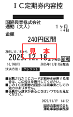◆IC定期券発売時に「IC定期券内容控」を発行しますので定期券と一緒に必ず携帯してください。係員・乗務員が確認させていただく場合がございます。◆PASMO・Suicaの券面に定期券の設定運賃や有効期限等の印字はされません。